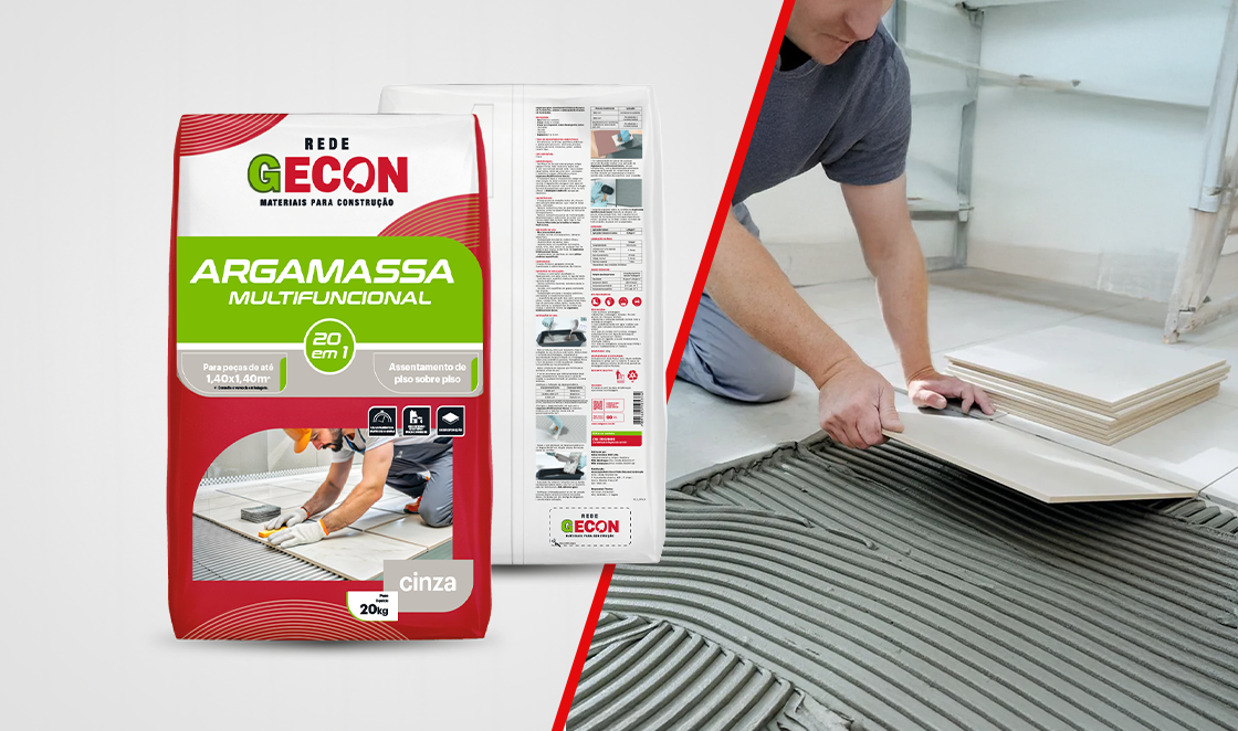 Pensando nisso, a GECON apresenta sua argamassa exclusiva, vendida somente nas lojas associadas da rede. Um produto desenvolvido para oferecer alto desempenho, excelente aderência e aplicação prática, ideal para obras de todos os tamanhos.